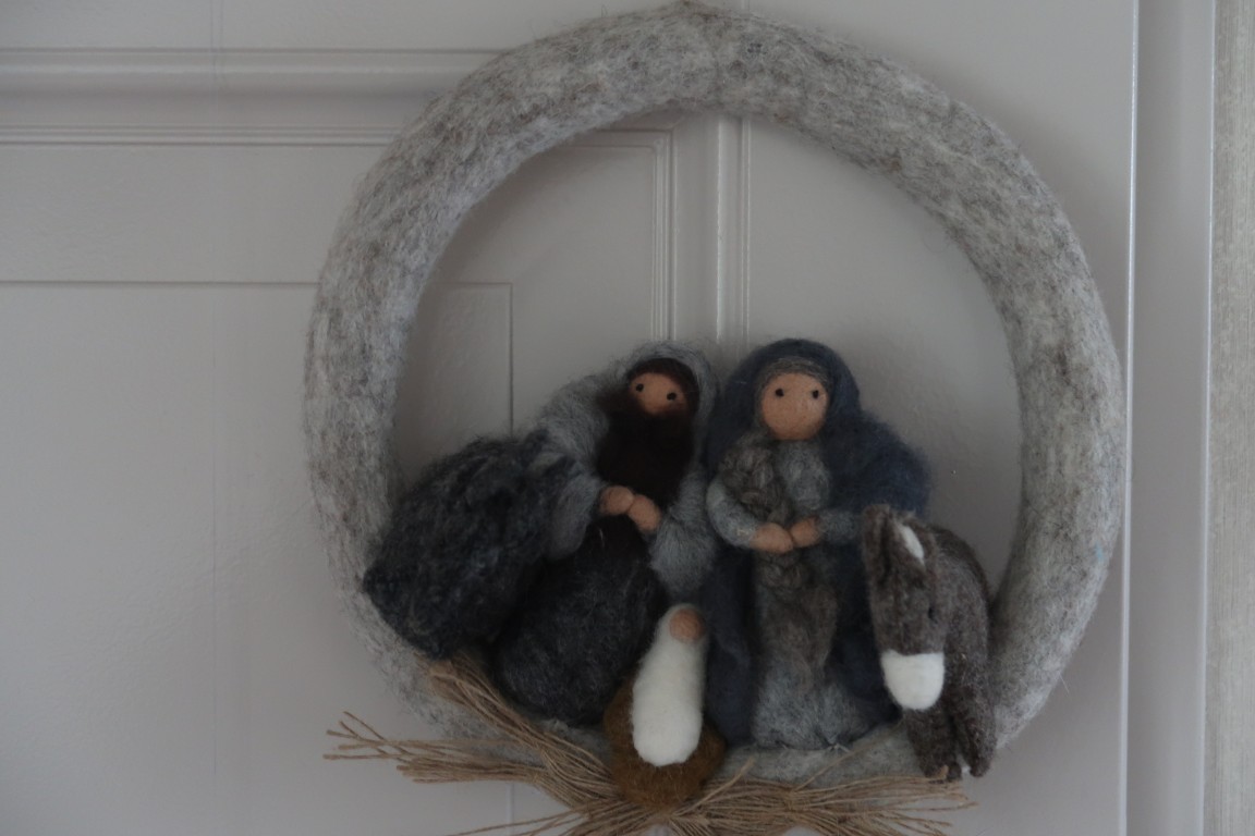 136 : Vilten Krans JAAR: TERUG naar overzicht Getagd met 136, 4. Groot (12 – 20 cm), BOX 24, Heilige familie, Nepal, Vilt Vorig bericht: 135 : Papierknipkunst Cirkel Volgend bericht: 099: Groepje in eieren