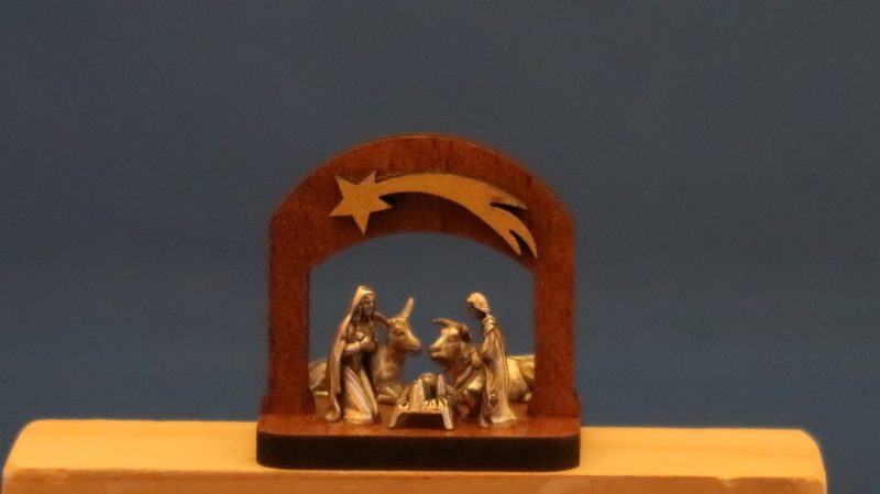291: Zilvertin groepje in houten boogje Getagd met 2. Klein (3 – 6 cm), 291, BOX 29, Europa, Heilige familie, Hout