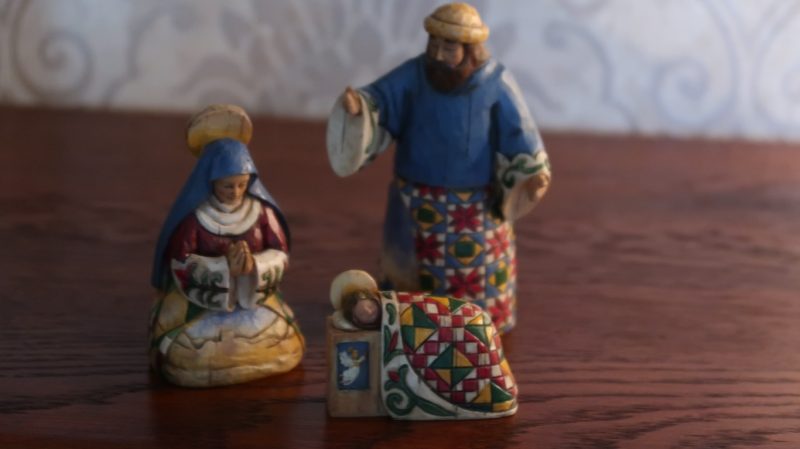 306 : Jim Shore Hoevelaken Getagd met 3. Middel (6 – 12 cm), 306, BOX 44, Heilige familie, Kunsthars, USA
