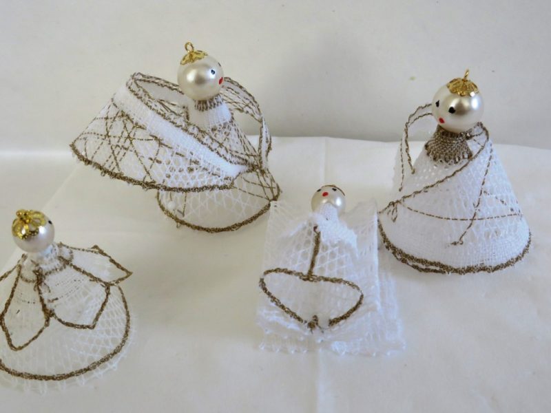 160 : Kantklos Engel, Herders, Familie En Wijzen Getagd met 160, 3. Middel (6 – 12 cm), Beeldengroep, België, Linnen, Los object
