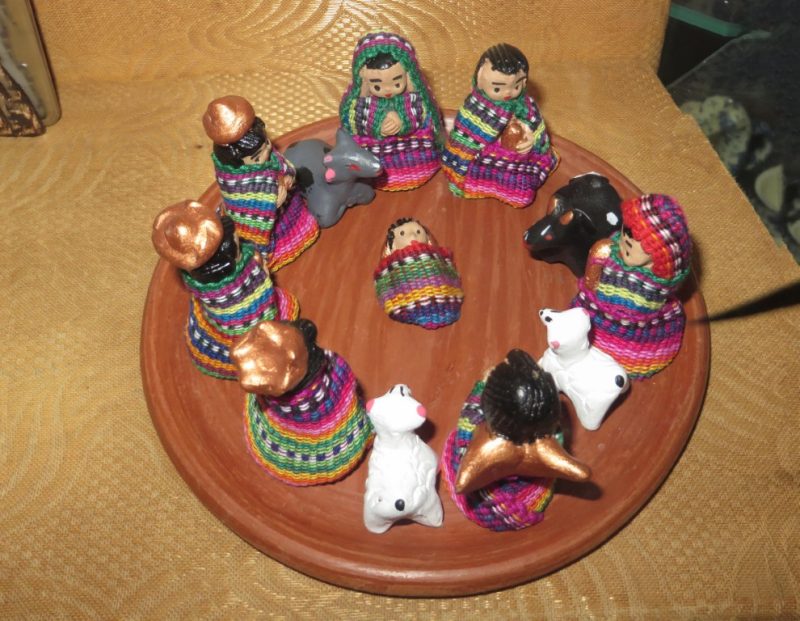 201: Kerstgroep in behuizing Getagd met 201, 3. Middel (6 – 12 cm), BOX 01, Groep met stal, Hout, Mexico