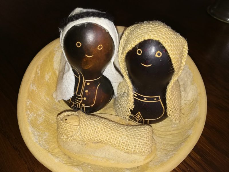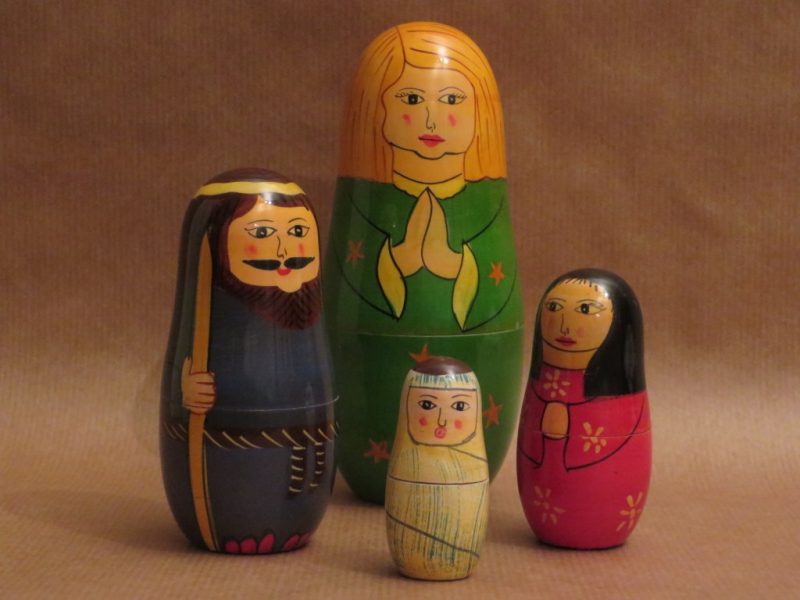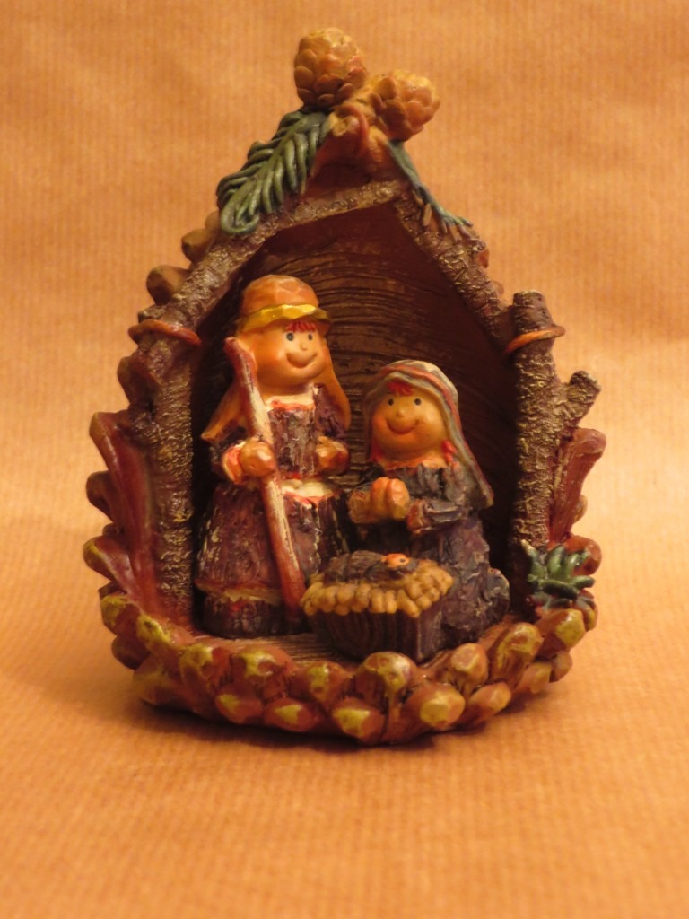 179: Groepje in dennenappel Getagd met 179, 3. Middel (6 – 12 cm), BOX 10, Heilige familie, Kunsthars, Nederland