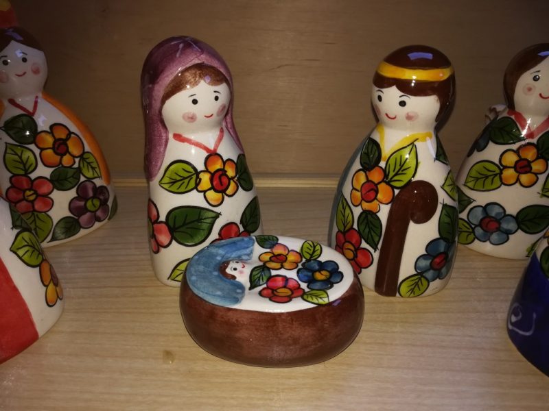 221: Jezus met een flesje Getagd met 221, 3. Middel (6 – 12 cm), BOX 08, Heilige familie, Keramiek, Latijns Amerika